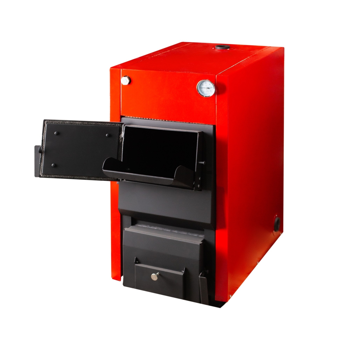 • Безопасность и удобство обслуживания. Теплоизолирующая облицовка из базальтового волокна снижает риск ожогов и минимизирует теплопотери. Конструктивные элементы (загрузочная и растопочная двери, ящик зольника) облегчают загрузку топлива, контроль горения и очистку.